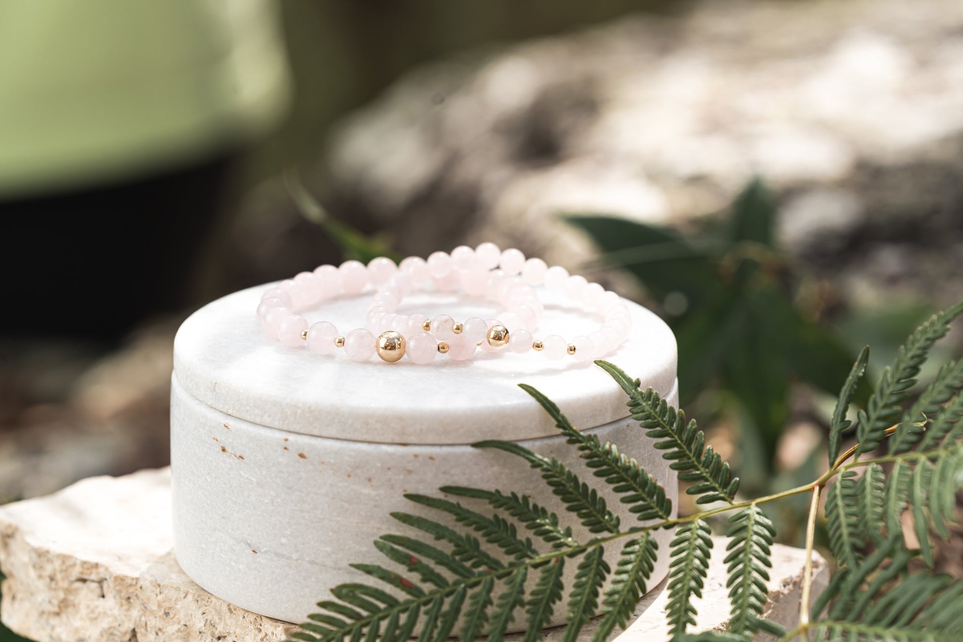 Introducing the My Elysians Eros Bracelet – a symbol of love, adorned with the enchanting Madagascar rose quartz beads and the elegance of 14k filled gold beads or sterling silver beads. Meticulously handcrafted, this bracelet is not just a piece of jewelry; it's a heartfelt expression of affection, enhanced by the remarkable benefits of wearing rose quartz.